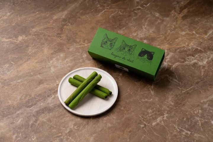 ほろ苦い抹茶味のラングドシャ生地をロール状に巻き上げた焼菓子。サクサクと軽やかな食感とともに、上品な抹茶の香りが口いっぱいに広がります。