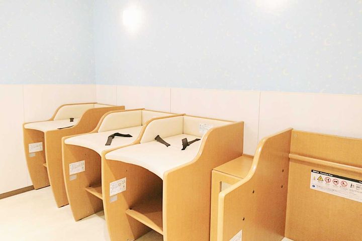 中には、オムツ替え用のベッドがずらりと並んでいます。 そのうちの一つを使っていると、隣にいたママさんに声をかけられました。