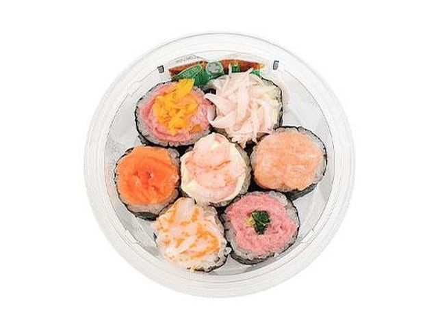 昼食や夕食にはもちろん、おつまみにもぴったりなミニ寿司セットです。巻寿司に7種類の具材を彩りよく盛り付けました。