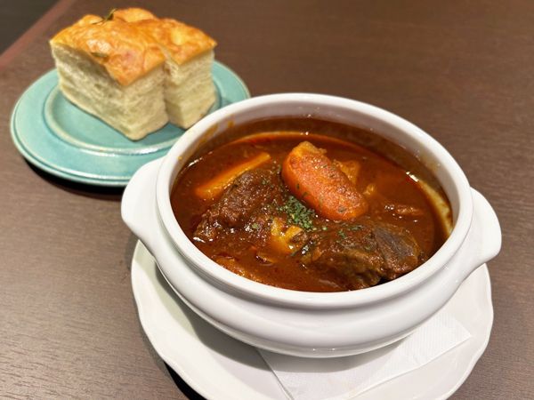 フォカッチャは、もっちり、しっとり食感。ビーフシチューとの相性も良かったです。