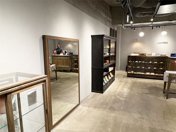 今回訪ねたのは、「1909 ユウリンショクドウ」ではなく、完全予約制の「有隣食堂」。「1909 ユウリンショクドウ」のスタッフに、予約の旨を告げると、案内されたのは、併設されたアートギャラリーショップ。
