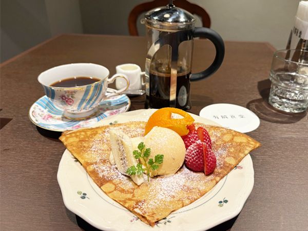 おいしいビーフシチューだったなぁと、思い返していると、次に現れたのはデザート。こちらのクレープ、かつてデザイン・画材用品などを扱っていた「ユーリンファボリ」にクレープ店が併設していたことに由来しているんだとか。その伝統のクレープがデザートとして提供されているのです。