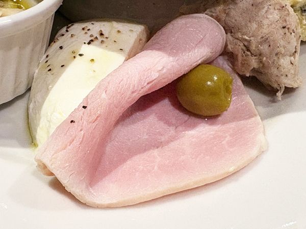モッツァレラチーズは、大ぶりにカットされていて、食べ応えあり。モッチリとしながらもサラッとした味わい。ハムは肉感がしっかりとあり、程よい塩味、モッツァレラチーズと一緒に食べても、グリーンオリーブと一緒に食べてもよき組み合わせでした。