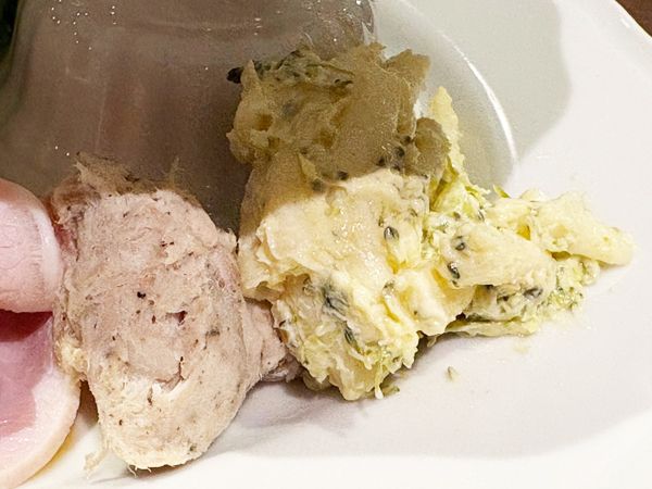 リエットは、しっとりなめらかながらも肉のうまみが凝縮。マカロニサラダはバジル風味でさわやかでした。
