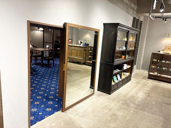 「こちらからお入りください」と、ギャラリーにある鏡を引くと…。