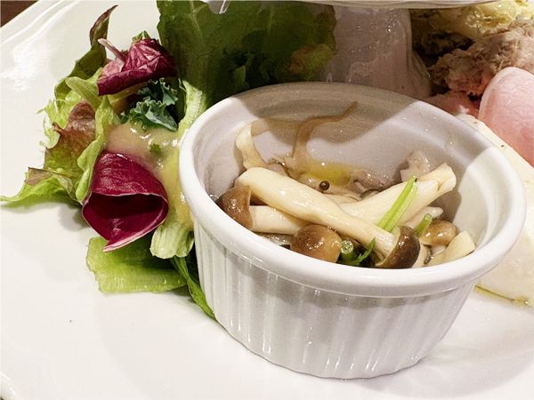 キノコのマリネはさっぱりとした酸味がいい塩梅。