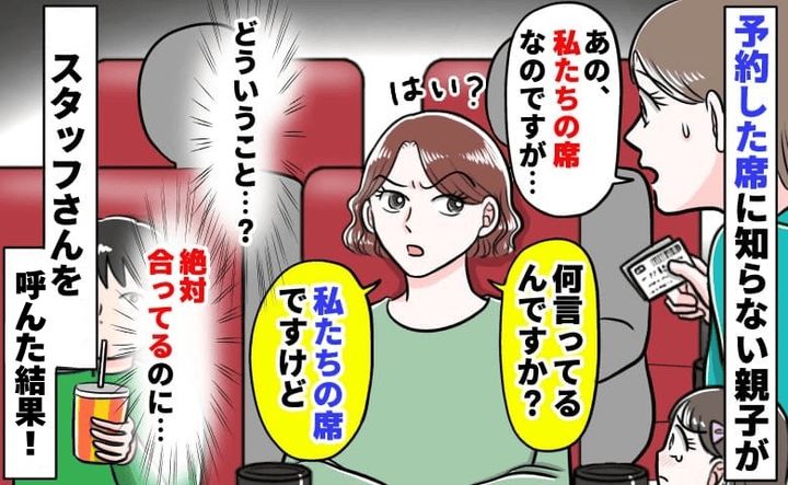 私「私たちの席ですが…」女性「何言ってるの?」映画館の予約席に見知らぬ親子。へ?店員を呼んだ結果