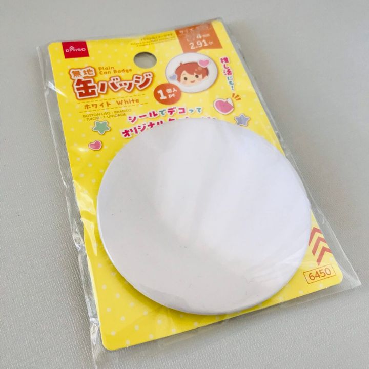 切なくて、どうしようかなと考えていたところ【DAISO】でデコれる缶バッチを見つけました!!