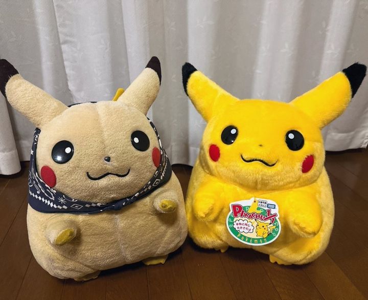 積み重ねてきた時間を非常に感じさせられるお写真ですね。1997年発売のピカチュウが、ポケモン30周年を記念し【おかえり!ピカチュウ1/1】として復刻。もちろん弟は色鮮やか・毛並みもよりフカフカです。兄は色褪せてしまっていますが、思い出は色褪せていませんね…!