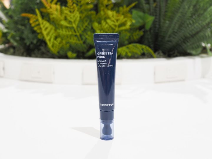 よしかわ:最後は部分用美容液。私は特に目元の小ジワをケアしたくて、INNISFREEの「グリーンティー PDRN バウンス アイ&スポット セラム」を選びました。グリーンティーPDRN(※1)とレチノール(※2)配合で、美容液が話題になった同じシリーズから新しく登場した部分用美容液で、摩擦を軽減したシリコンのヘッドで直接塗布することができます。