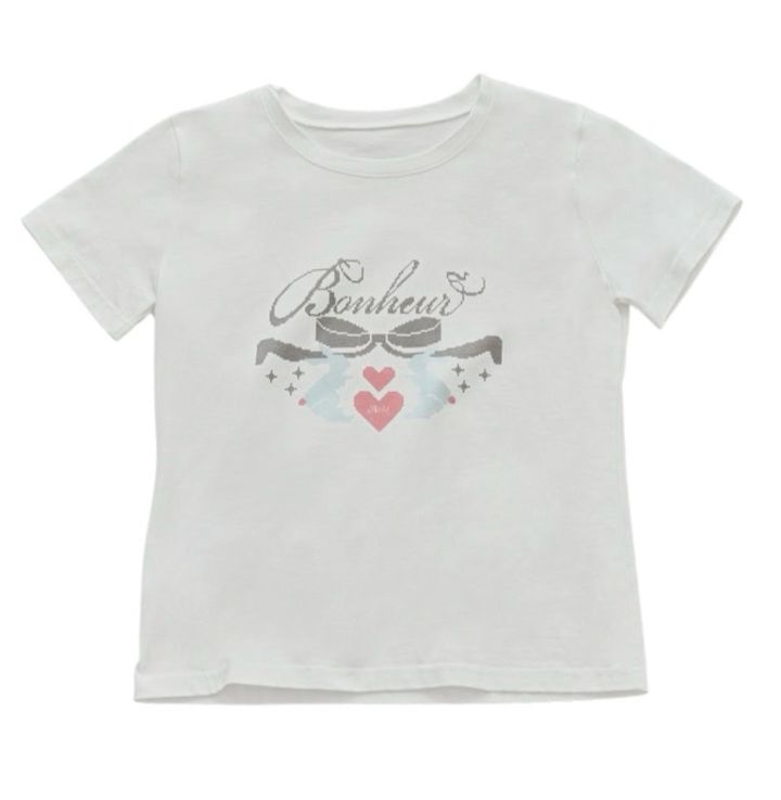 ハートやリボン、うさぎなど可愛いモチーフがぎゅっと詰まった心ときめくデザイン。コンパクトなシルエットと程よい丈感で、デニムやミニスカートなど様々なボトムと合わせやすい一着。¥4,180/バースデールーム(アンティローザ)