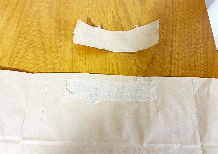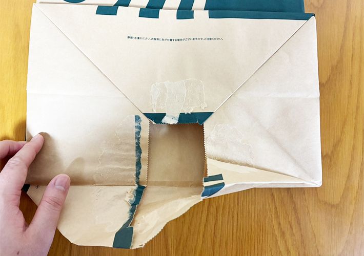 次に、紙袋のマチの部分を手で剥がし、解体してください。