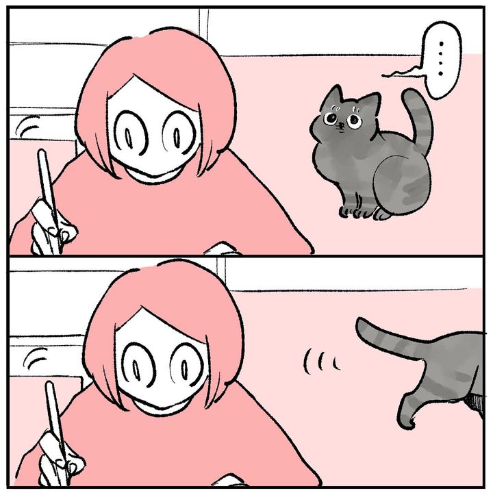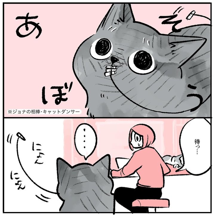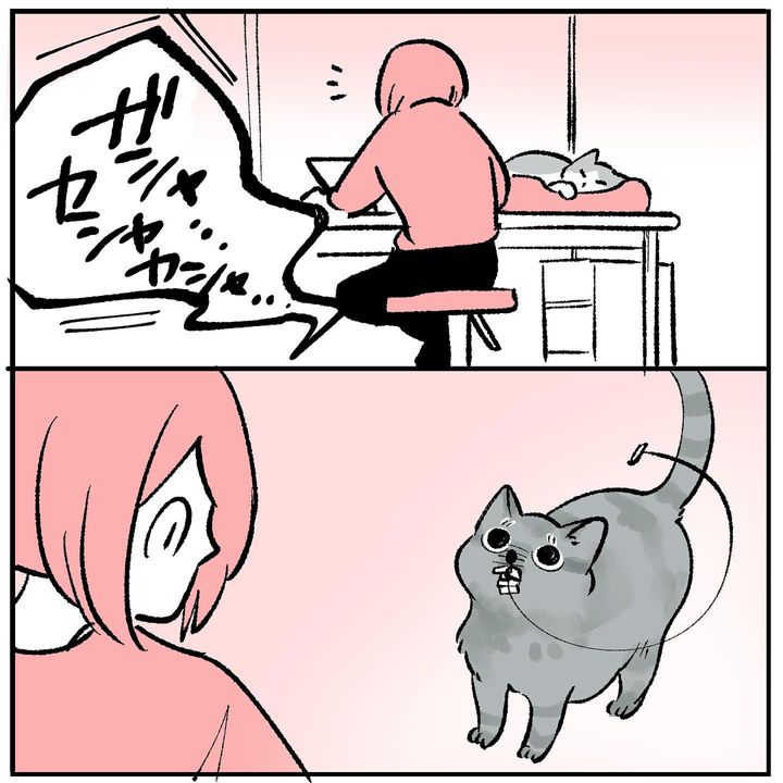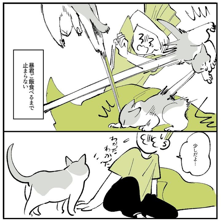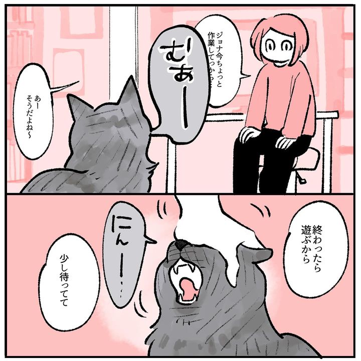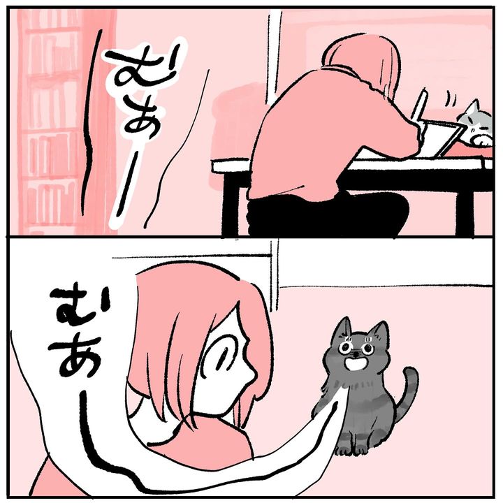 2匹の待ち方は、兄妹ながら驚くほど対照的。それでも、策士な彼らに翻弄される時間は、何物にも代えがたい幸福なひとときです。愛しさのあまり、ついつい手を止めて構ってしまう長谷川さん。