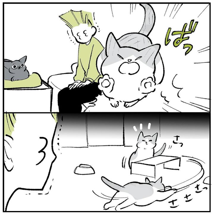 見た目は天使、中身は暴君(!?)な妹・サンちゃん。彼女の武器は、ターゲットを逃さない圧倒的な「粘り強さ」です。「ごはんをもらえるまで、私は一歩も動かないわ」と言わんばかりの、ごはんが欲しい時の徹底的な交渉術は、もはやプロの領域。