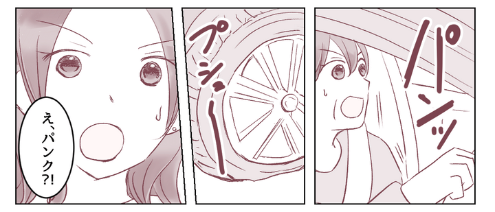 気付くとタイヤのひとつがしぼんでいました。車を寄せすぎて縁石にタイヤをぶつけたようです。突然の出来事に、私はアゼン。子どもたちも驚いて目を丸くしていました。