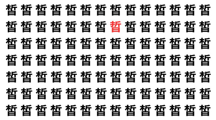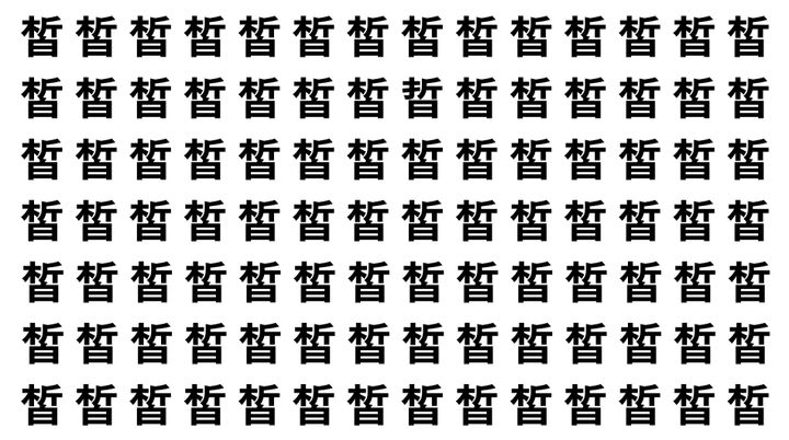 たくさんの「皙」の中に、よく似た別の漢字が1文字だけ隠れています。