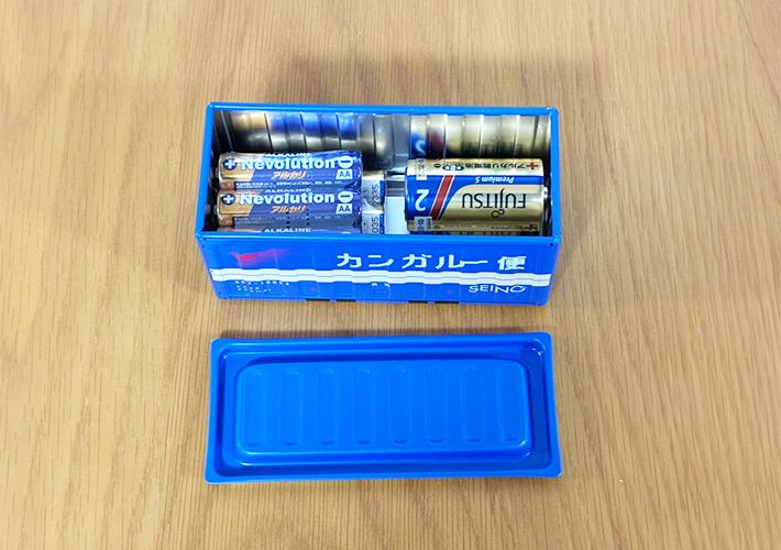 電池もバラバラになりやすく管理が難しいアイテムの1つでしょう。そこで、ミニチュアコンテナに収納してみると…。