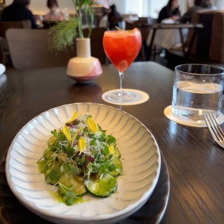 ランチはコースを選びましたが、どのお皿も見た目がとても美しく、運ばれてくるたびに気分が上がります。素材はシンプルなのにしっかりと印象に残る味わいのズッキーニのカルパッチョ。しっとりとした食感で、ソースによって様々な味の表情を変えたメインのポーク。デザートのパンプキンのバグズチーズケーキも、甘さは控えめなのに濃厚で、最後まで美味しく頂けました。母とゆっくり会話を楽しみながら過ごせた幸せな時間。また少し特別な日に訪れたいと思います。