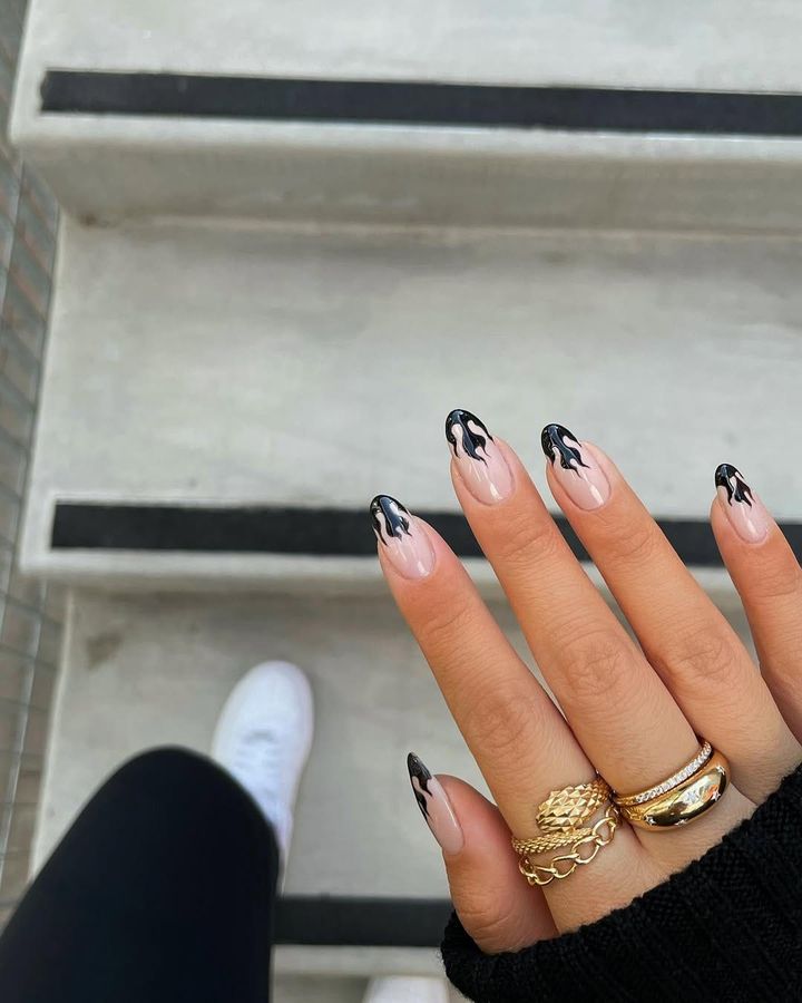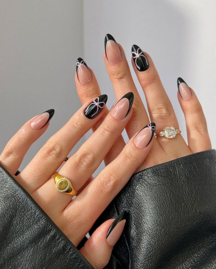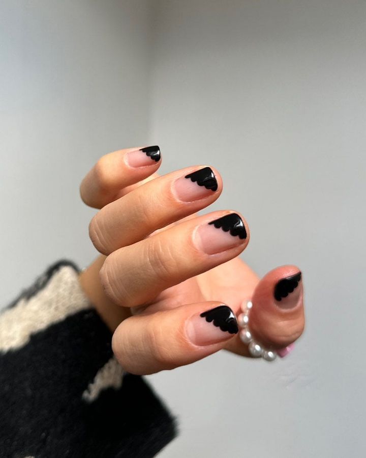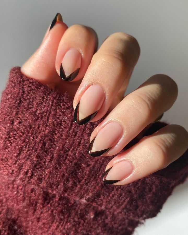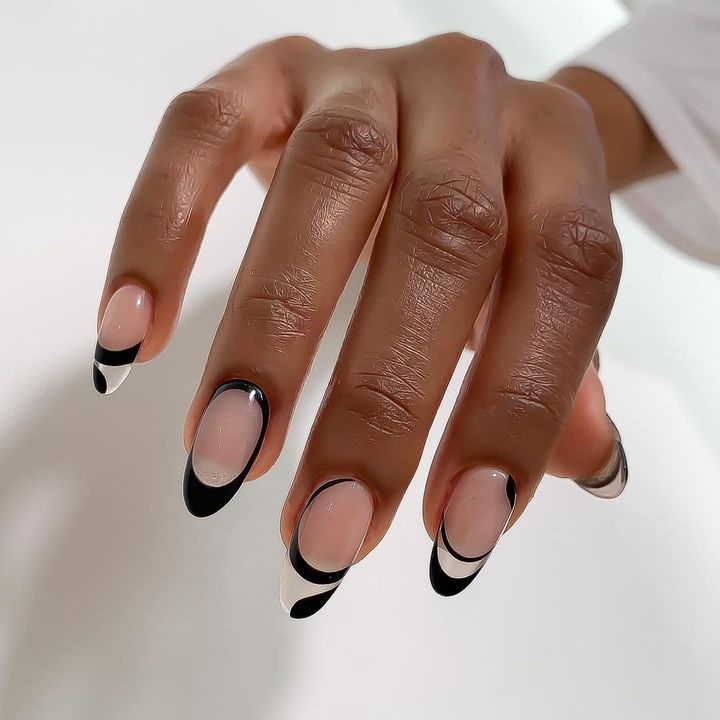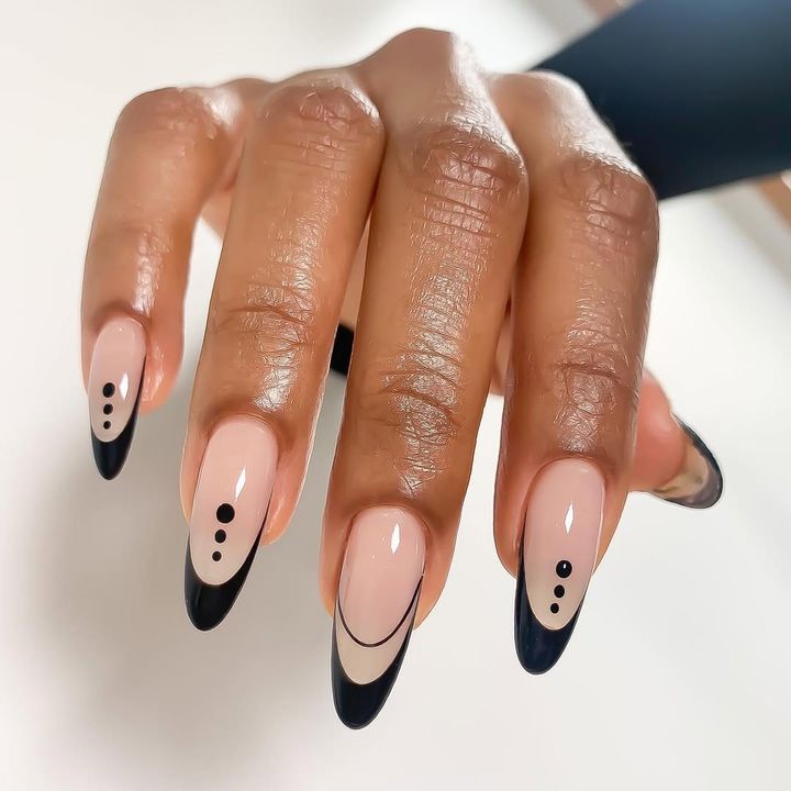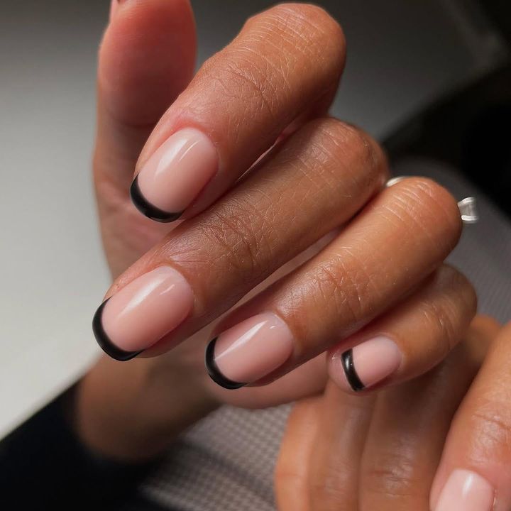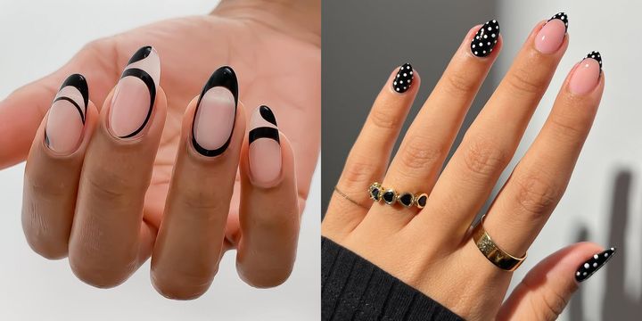 いつものニュートラルカラーのネイルをワンランクアップさせたような、そんなネイルデザインを想像してみて。万能で洗練された印象でありながら、思わず二度見してしまうほどのコントラストがポイント。黒はどんな色とも相性抜群なので、シンプルにまとめるのもよし、ドットやメタリックアクセント、ネガティブスペース、小さなスタッズなど、ディテールにこだわるのも自由自在。