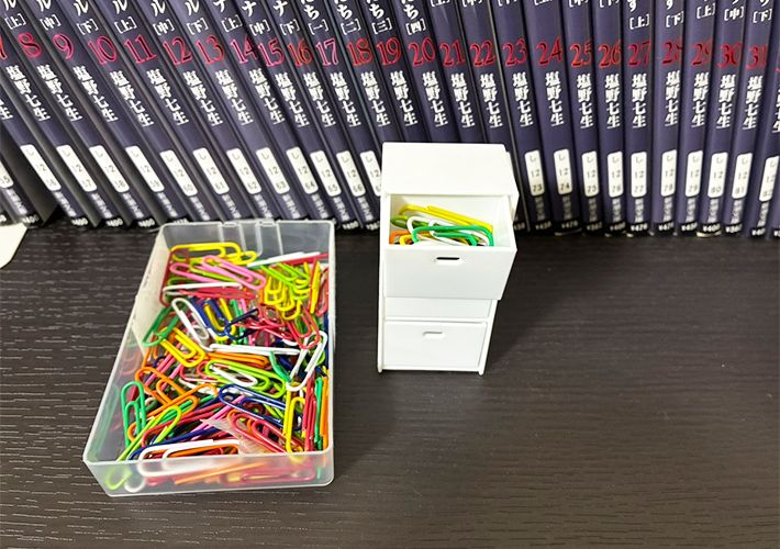 まずはクリップです。筆者は普段、クリップを専用のケースに入れてデスク横の引き出しに入れていますが、使う時にいちいち取り出すのが面倒に感じていました。