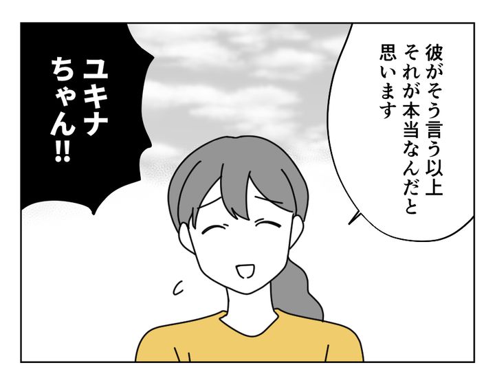 「彼がそう言っているのであれば、それが本当」ユキナさんの言う通り、サナエさんとルカさんが信じないといけないのはマサユキさんのはずです。結婚しようと思った相手の言葉を信じられず、元妻に離婚理由を聞きに来ている時点で未来は見えてしまっている気もするのですが……。断ってもすがってこられると、ユキナさんも困ってしまいます。