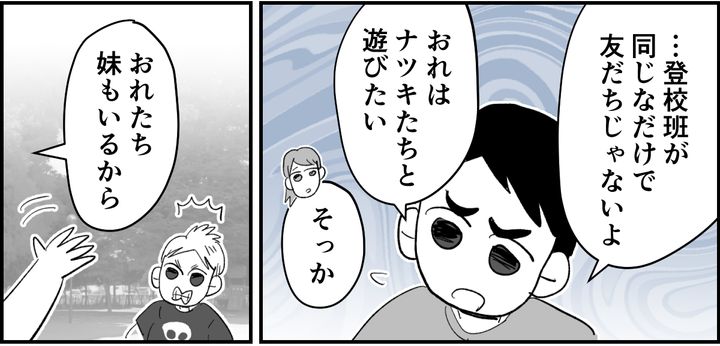 カズキくんは、ハジメくんの「友だち」だと言っていましたが、ハジメくんは「友だちではなく登校班が同じなだけ」と若干線引きしているようです。