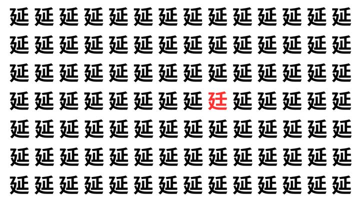 たくさんの「延」の中に、よく似た別の漢字が1文字だけ隠れています。