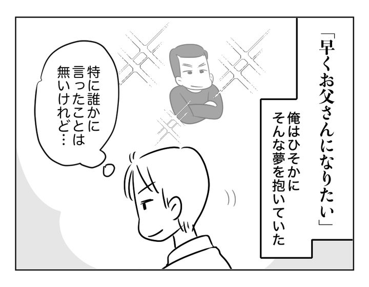 25才で結婚とは、なかなか早いですね。それくらい運命のお相手に出会ったということなのでしょうか。経済面でも、家庭を支えられるくらいしっかりと働けているということなのかもしれません。結婚して早々に第一子を授かったマサトさんご夫妻。このたびようやく家族3人の生活がスタートします。マサトさんは長年の夢だった「お父さん」になれると思い、足取りも軽く帰宅するのでした。