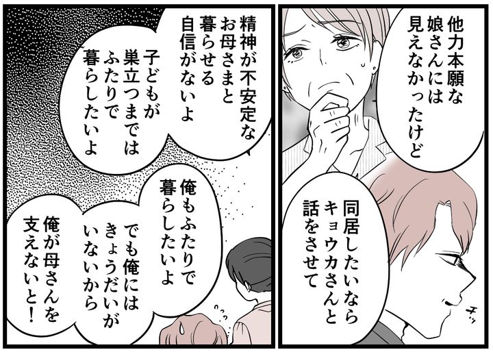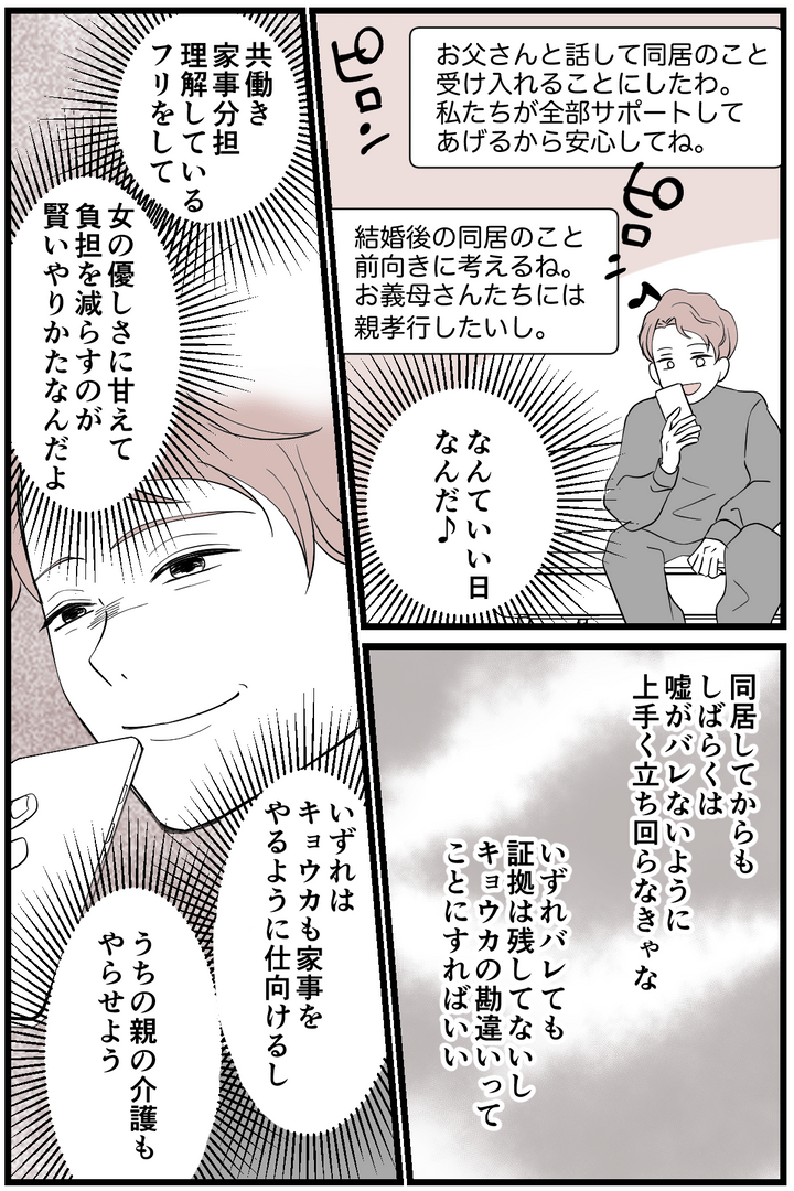 3. <新婚なのに同居?>俺って天才!母と婚約者を丸め込んで同居してやる【まんが:息子の気持ち】
