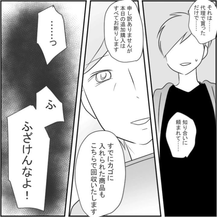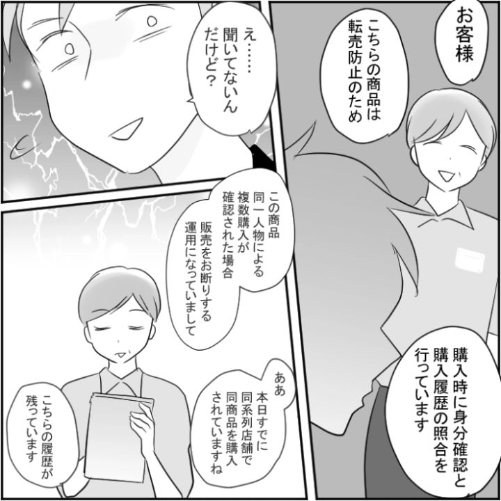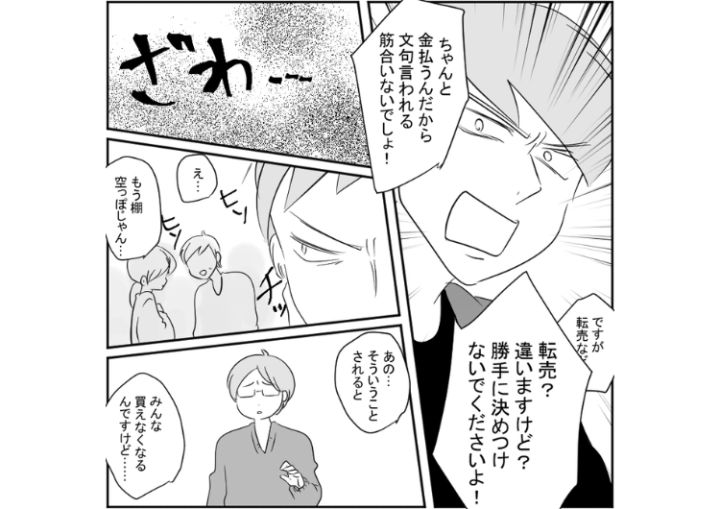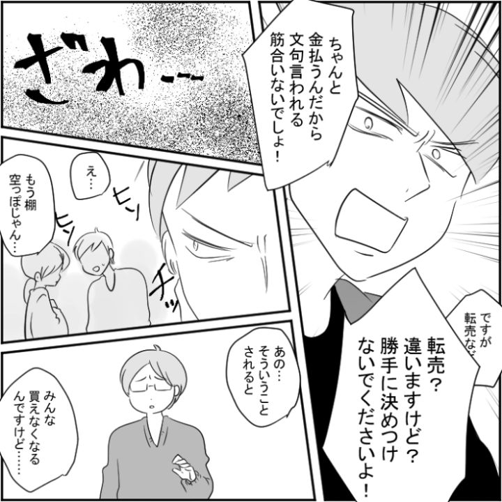 衝撃のエピソードを漫画化!今回は人気のグッズを明らかに転売目的で買い占めているのに注意されると逆ギレする男のお話をご紹介します。