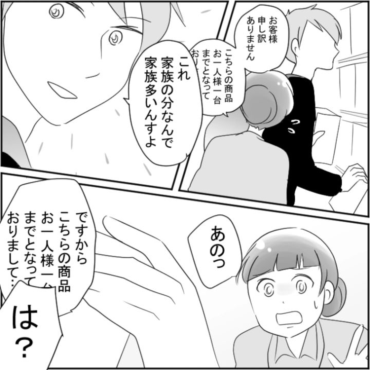 本当に欲しい人がきちんと購入できるルールがあると安心して買い物にこれるなと感じた主人公でした。