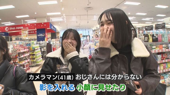 3人組:「影を入れる。小顔に見せたり」カメラマン:「おじさんにはわからない」