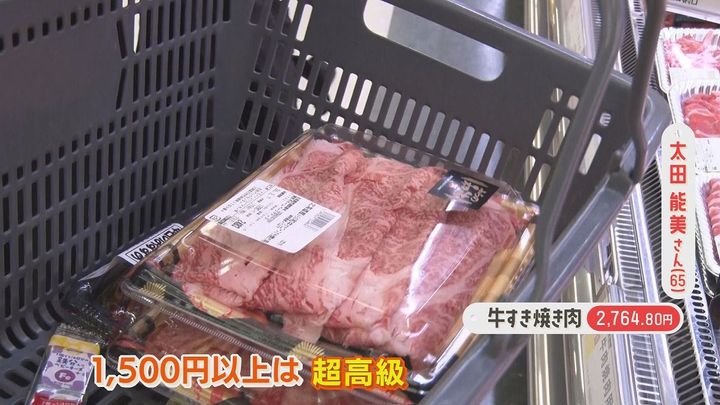 太田さん:「きょうはフライデーナイトの週末ですから。いいお肉ですね!もう1個いっちゃいます。普段は買わないお肉。1500円以上は超高級お肉」