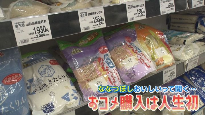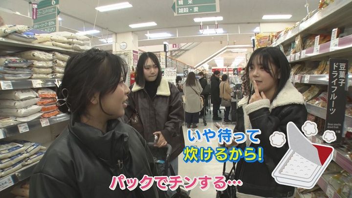 3人組:「お米どれにする?わからない。ママが買っているから」「何がいいかわからない。ちがいがわからない」