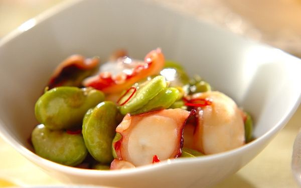 そら豆とタコのガーリックバター炒め