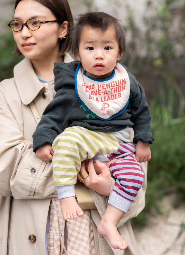 NAME:ようじくん・1歳カメラ目線もばっちり決まったようじくんのコーデは、異なる配色のボーダーを組み合わせたユニークなボトムを主役に、グレーのフーディで全体を引き締めたキッズカジュアル。目を引く『フィス』のペンギンプリントのスタイもお茶目なアクセント。遊び心たっぷりなラフな着こなしが魅力。item▼