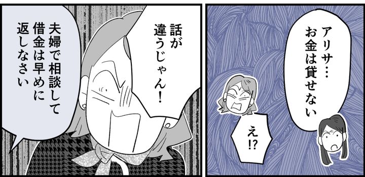 アリサは、私がお金を貸してくれると信じて疑わないのでしょう。しかし私は冷静に言いました。「アリサ……借金してるよね?」アリサの顔はみるみるうちに青くなっていきます。「パートでもして自分でどうにかしなさい」と言うと、アリサは声を荒げました。