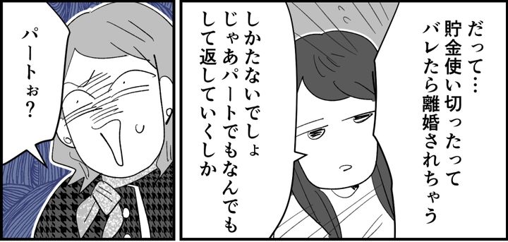 虚栄心のため無理な借金を背負ったにもかかわらず、「コウスケに知られたら離婚されるから助けて」と懇願します。