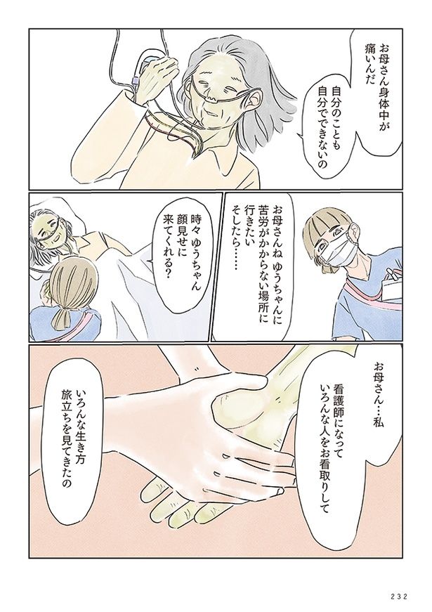 看護師の主人公・田中ゆうなは幼い頃、最愛の祖母が突然倒れ、寝たきりとなった過去をもつ。看護師として経験を重ねるなかで、数多くの患者を見送ってきたゆうなは、さまざまな最期の形があることを知る。