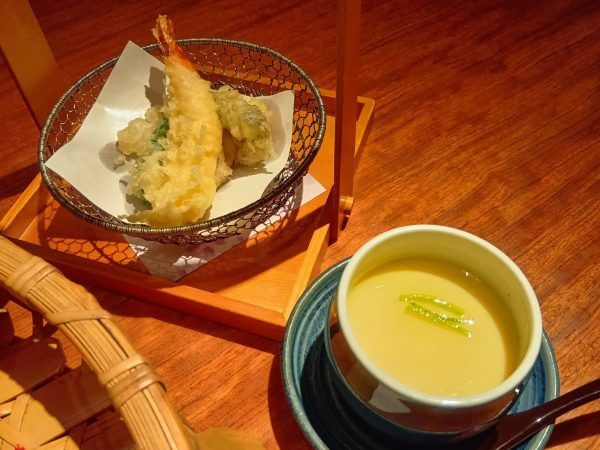 さらに、海老やキノコなど5種類のカラッと揚げたて天ぷらに、具だくさん茶碗蒸し。 和食店でいただく和食はやっぱり美味しいなぁってジーンと陶酔♪