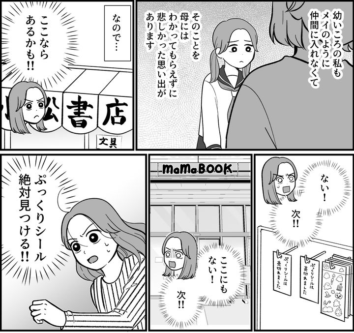 メイの話を聞いていると……自分の学生時代の悲しかった記憶を思い出しました。そして、メイがとても可哀想になりました。私は、SNSで情報を得て、たくさんの文房具店を回って、なんとか正規品の「本物」と呼ばれるシールを手に入れました。