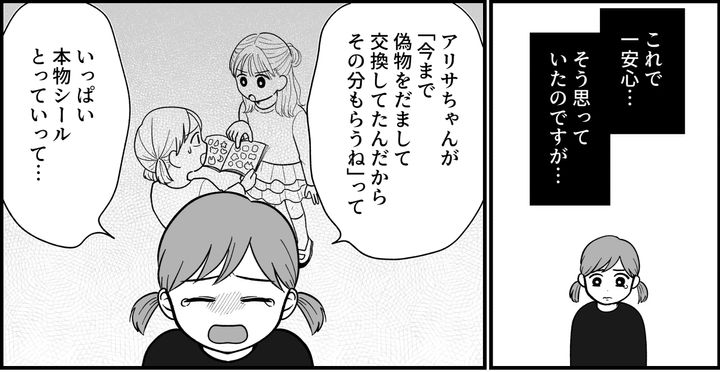 <偽物シールでイジメ!?>正規品のシールをゲット!なのに優等生にぜんぶ取られた?【まんが】