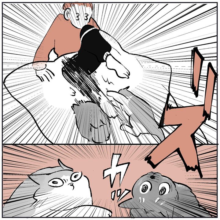 3. 【漫画】猫の兄妹の「冷ややかな拒絶」愛を叫ぶ飼い主と温度差に「完敗です」