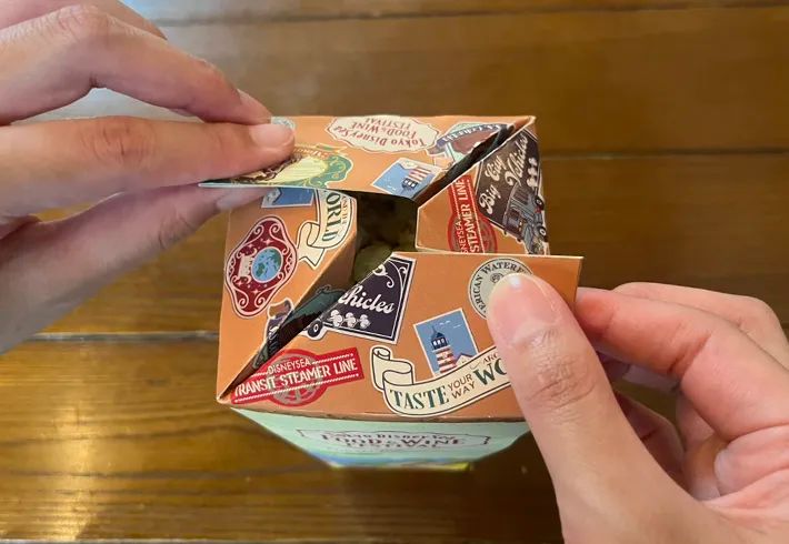 実は、パークで販売されている箱型パッケージのポップコーンには、中身がこぼれにくくなる畳み方があるのだとか。