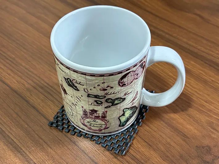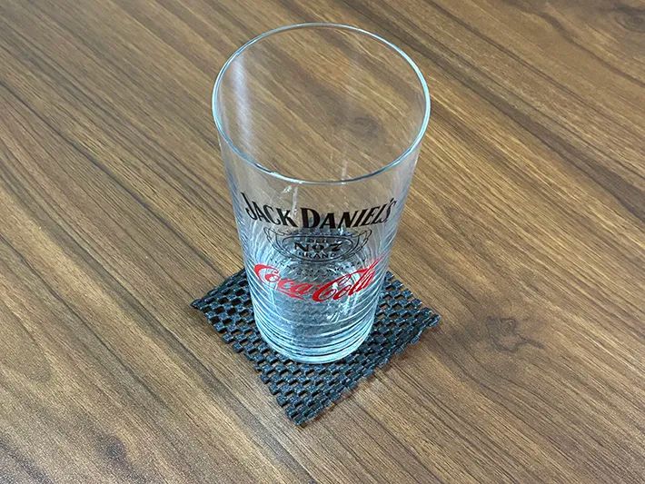 網目状のデザインが見た目のアクセントにもなり、簡易的なコースターとして十分活躍しました。