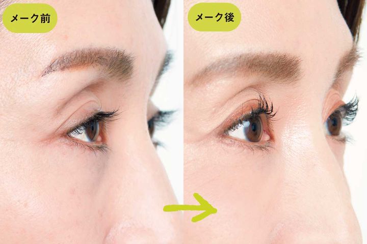左)<メイク前>くぼみの影で疲れ見えしやすい/右)<メイク後>ぱっと明るく元気な印象に