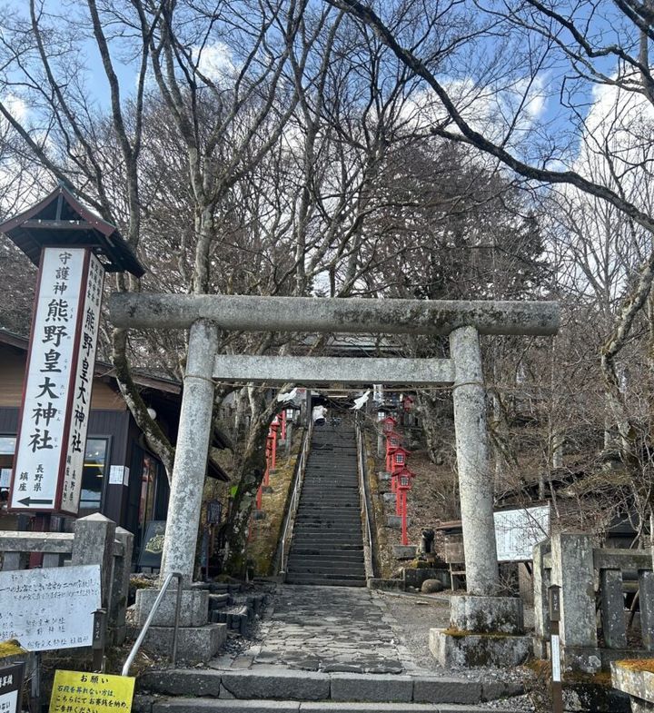 いつだって旅のテーマはグルメとパワスポと温泉、と決めているのでそのレストランの近くにある「熊野皇大神社」に行くことに。ここは全国的にも珍しい県境にある神社として有名なんです。ヤマトタケルが建立したと伝わる古社で、樹齢1000年以上のご神木があるというのでこれは是非見に行かねば!