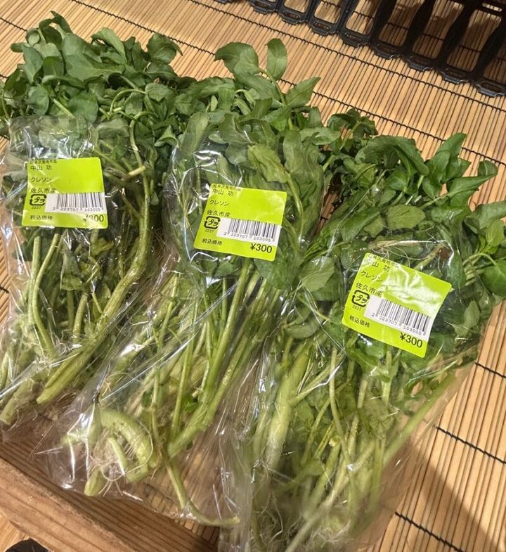 品薄状態の中、見つけた野菜で嬉しかったのがこちらのクレソン。都内のスーパーではありえない大量の束で300円。他に新鮮なふきのとうやキノコ類など山菜をゲットしました。次回軽井沢に来るときにはこのお店からスタートするか、次の日オープン時に訪れるのがよさそう。