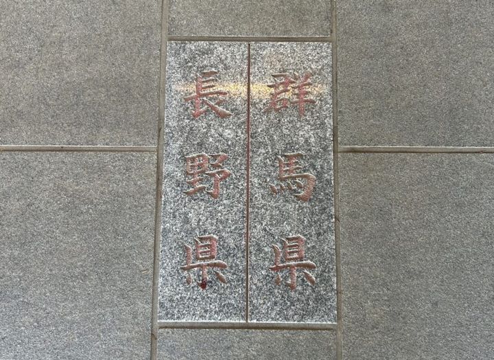 参道を進むと、目にしたら絶対またぎたくなってしまう県境を示す石材が埋め込まれていました。長野県側では「熊野皇大神社」、群馬県では「熊野神社」と呼び方も違うんです。ひとつの神社でありながら、賽銭箱や社務所は別々。建立は古く、ヤマトタケルが霧に迷ったときにヤタガラスに導かれたという伝説から導きの神様として信仰されているそう。