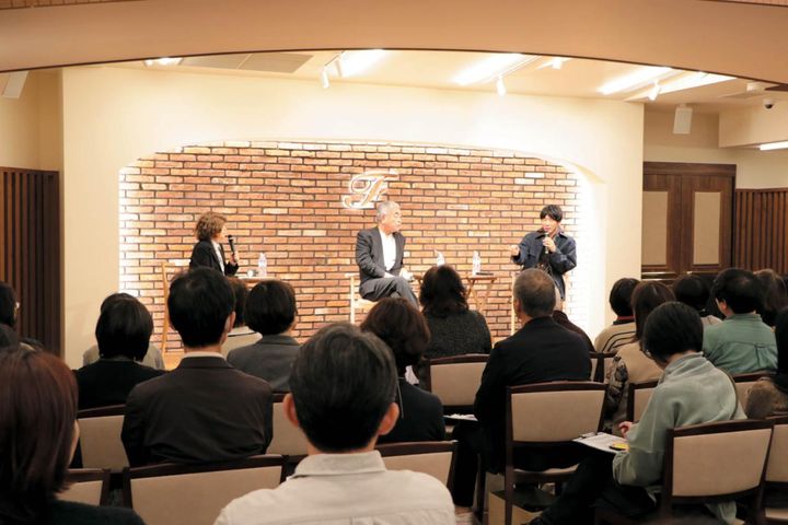 2025年11月に東京・広尾で開催されたトークサロンのひとコマ。建築家の隈研吾さんと社会学者の古市憲寿さんのセッションなど6セッションを少人数で聴く贅沢な会。